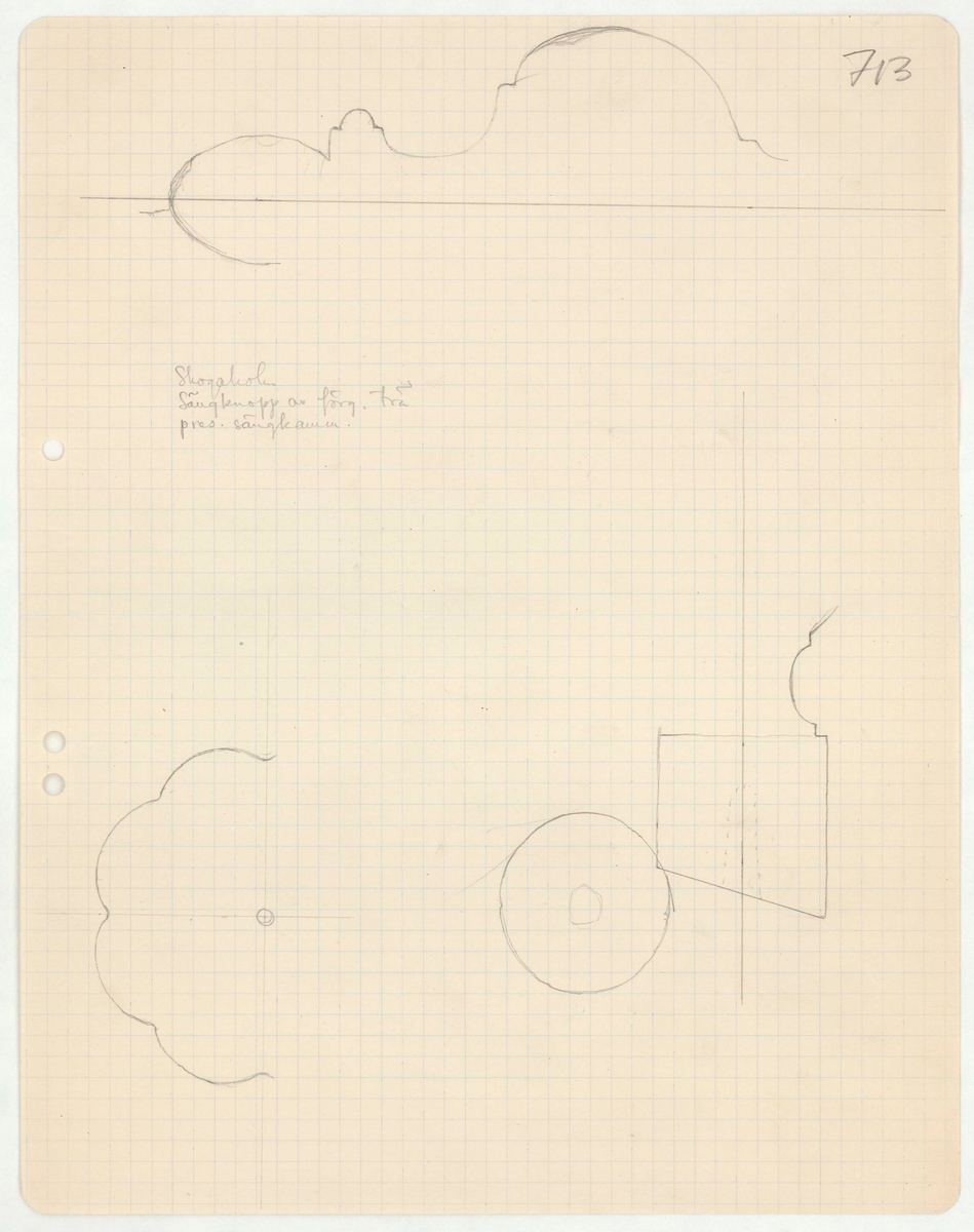 Titel: Skogaholms herrgård. Huvudbyggnaden. Sängknopp av färg (?) trä press (?) sängkammaren.