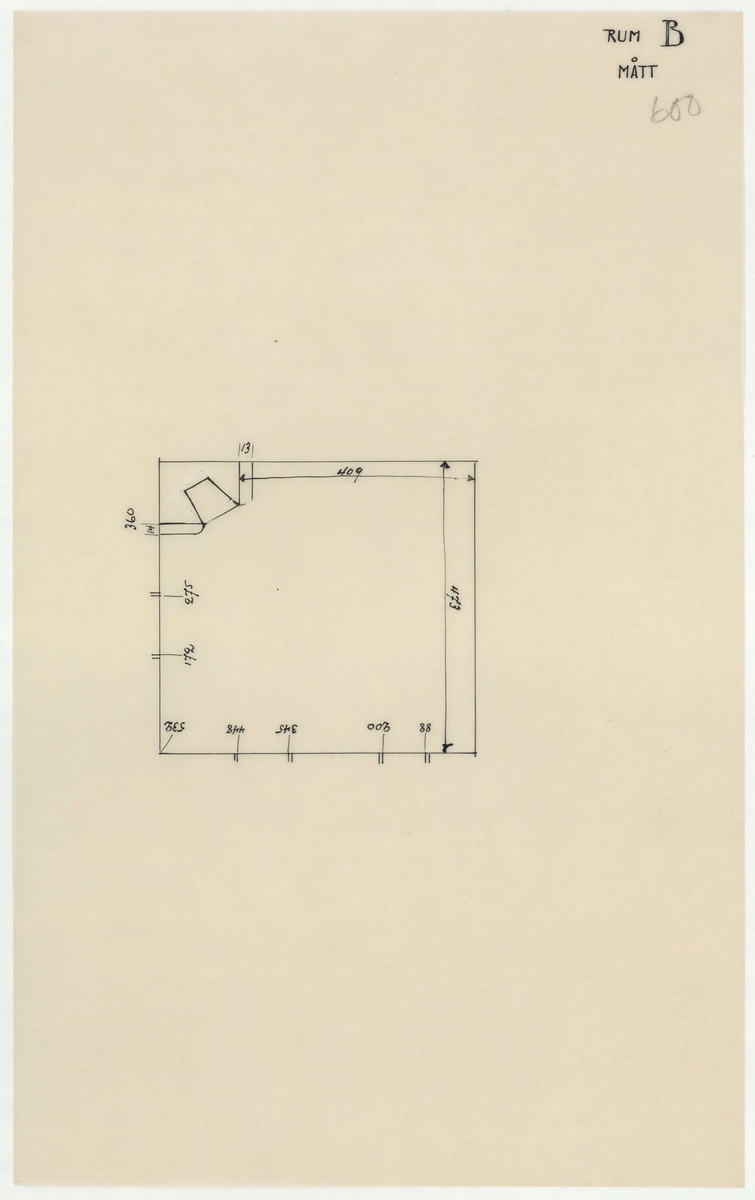 Titel: Skogaholms herrgård. Huvudbyggnaden. Detaljritning. RUM B. MÅTT.