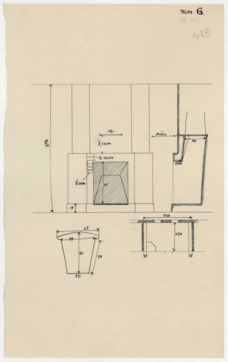 Titel: Skogaholms herrgård. Huvudbyggnaden. Detaljritning. RUM G.