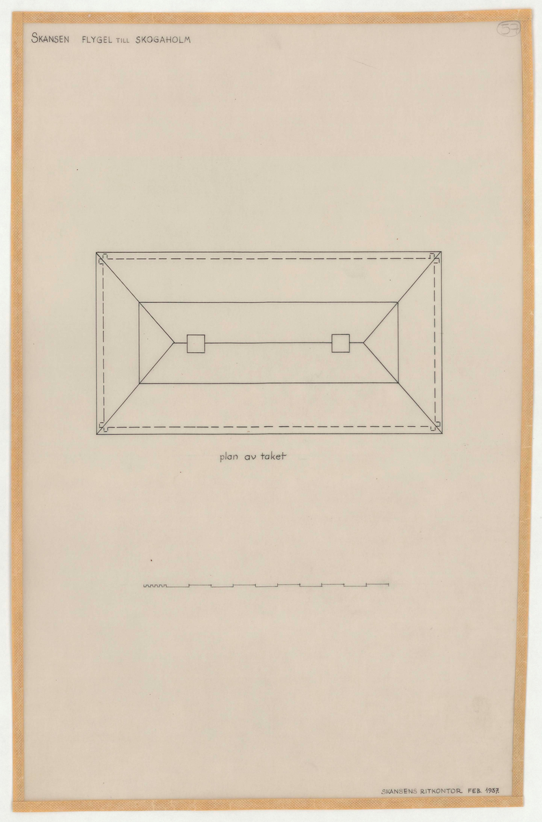 Titel: Skogaholms herrgård. Biblioteksflygeln. Planritning. Taket.