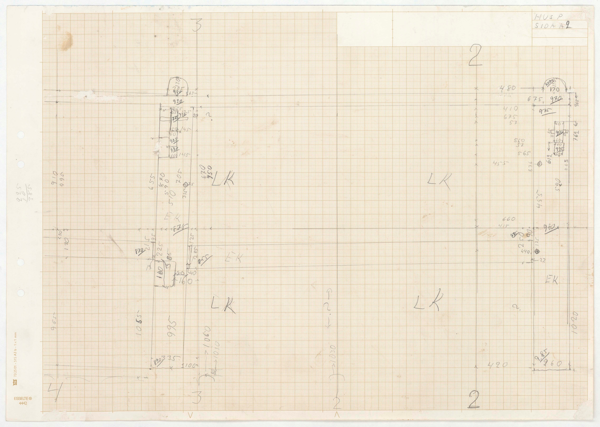Titel: Skånegården. Bostadshuset. Detaljritning. HUS P. SIDA A2.