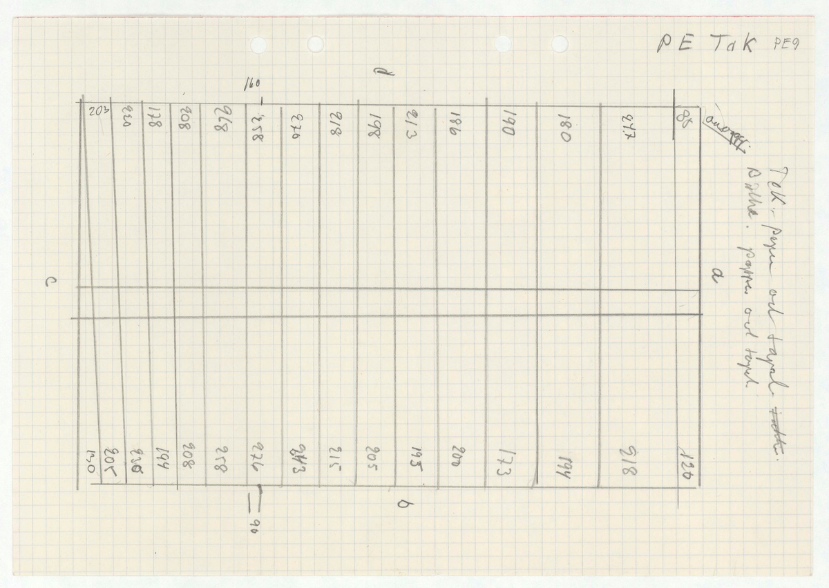 Titel: Skånegården. Bostadshuset. Detaljritning. PE Tak. Mer text finns.