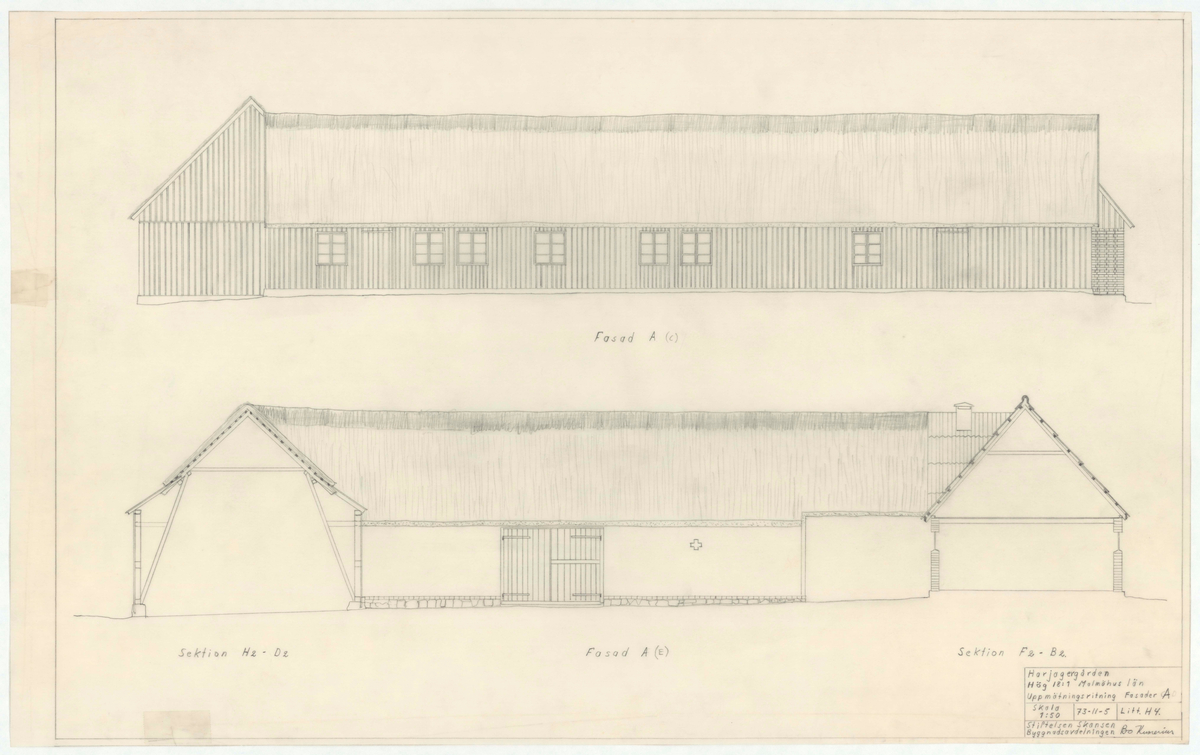 På Fasad in mot gårdsplanen även Sektion H2-D2 och Sektion F2-B2