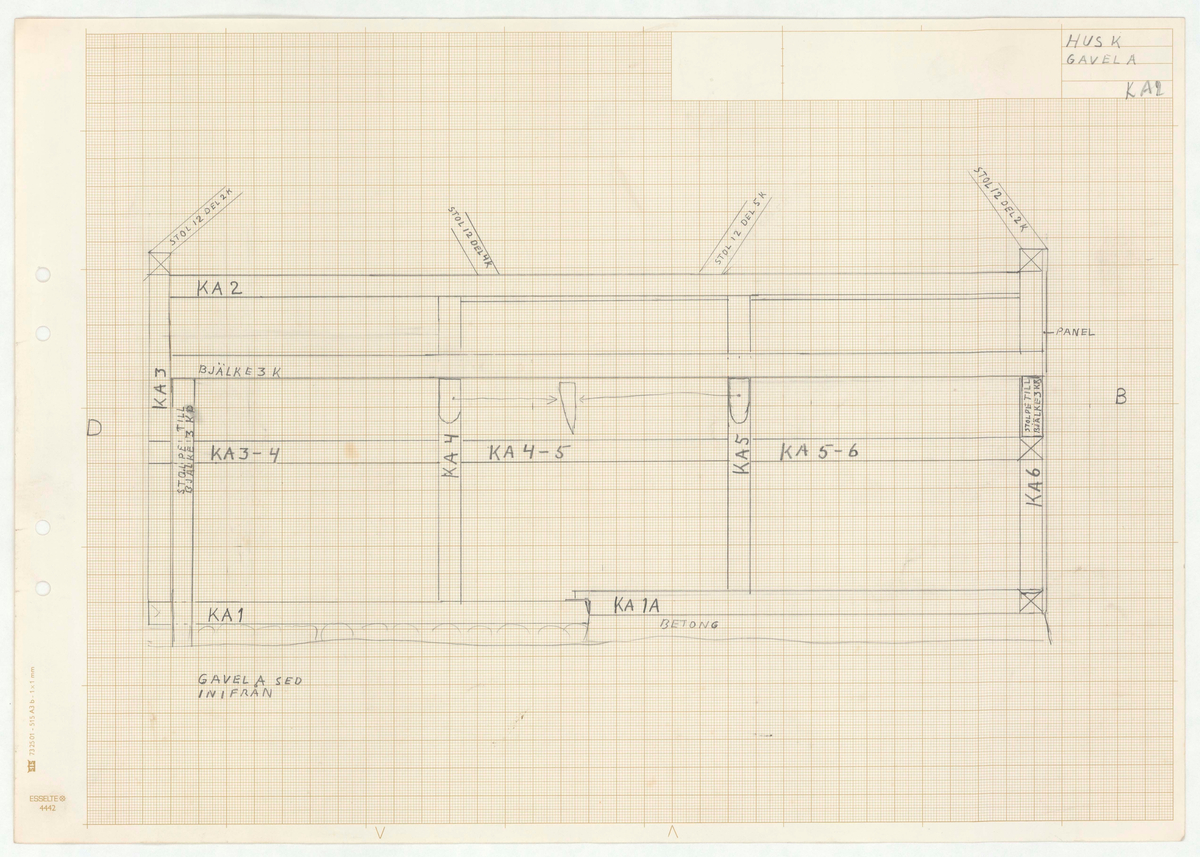 Titel: Skånegården. Västra loglängan. Detaljritning. HUS K. GAVEL A.