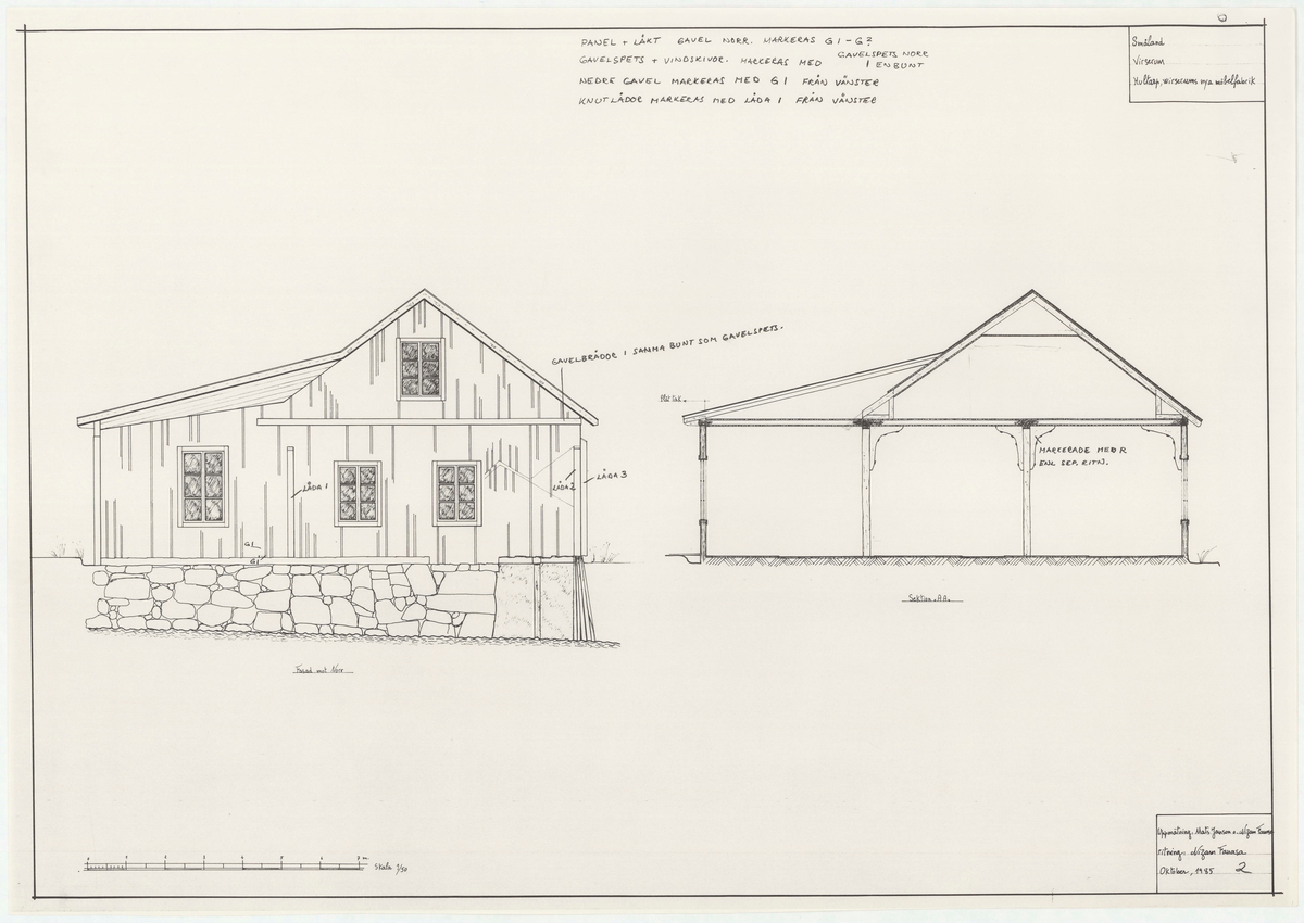 Titel: Snickerifabriken. Sektionsritning. Gavel. Panel plus läkt.