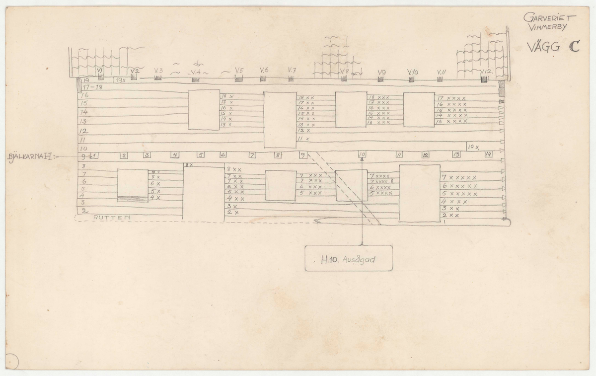 Titel: Garveriet. Uppmätningsritning. Vägg C.