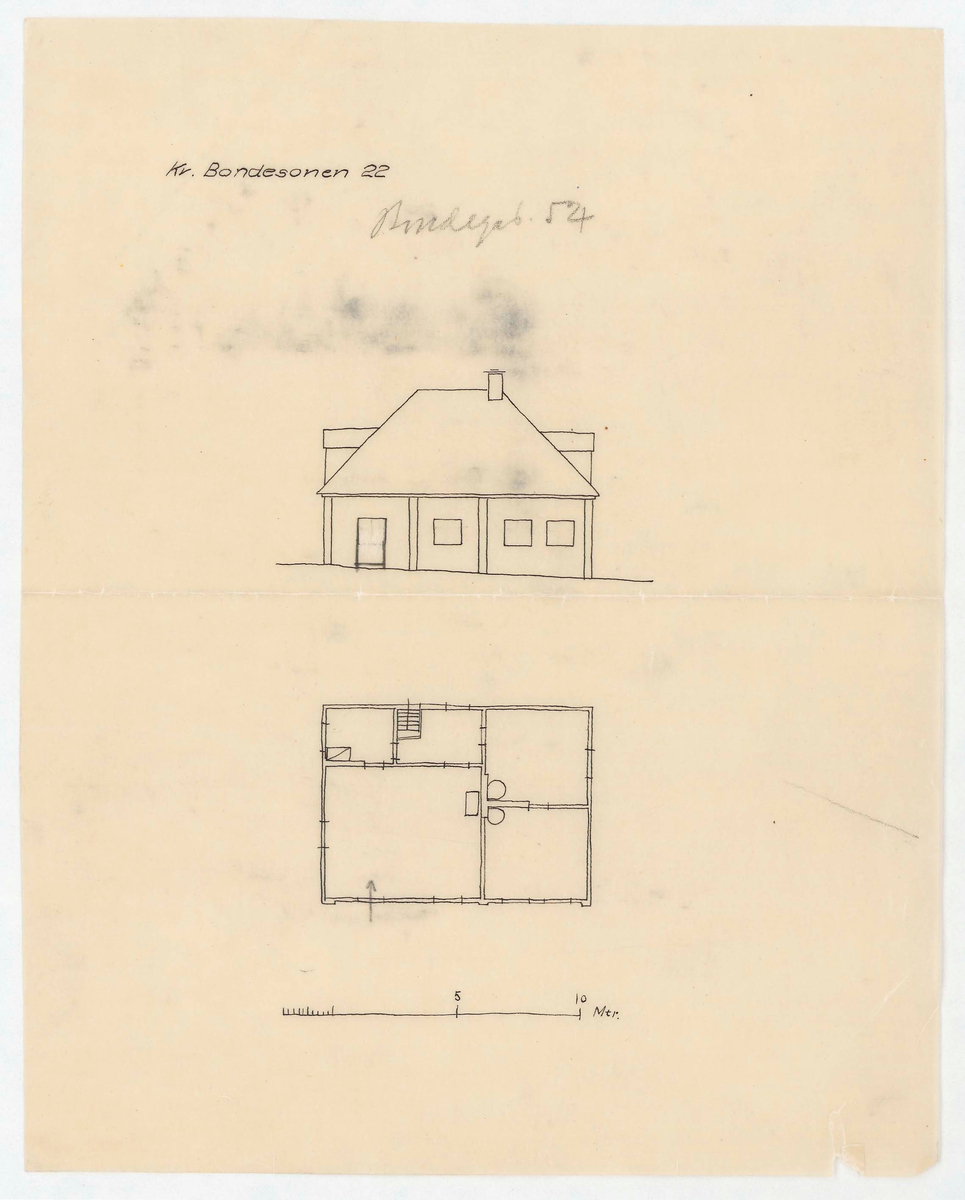 Titel: Sparbanken. Planritning. Fasadritning.