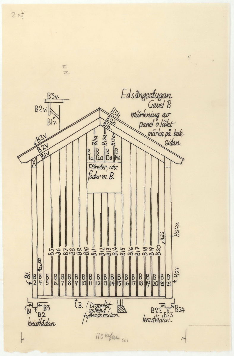 Titel: Delsbogården. Uppmätningsritning. Edsängsstugan. Gavel B.