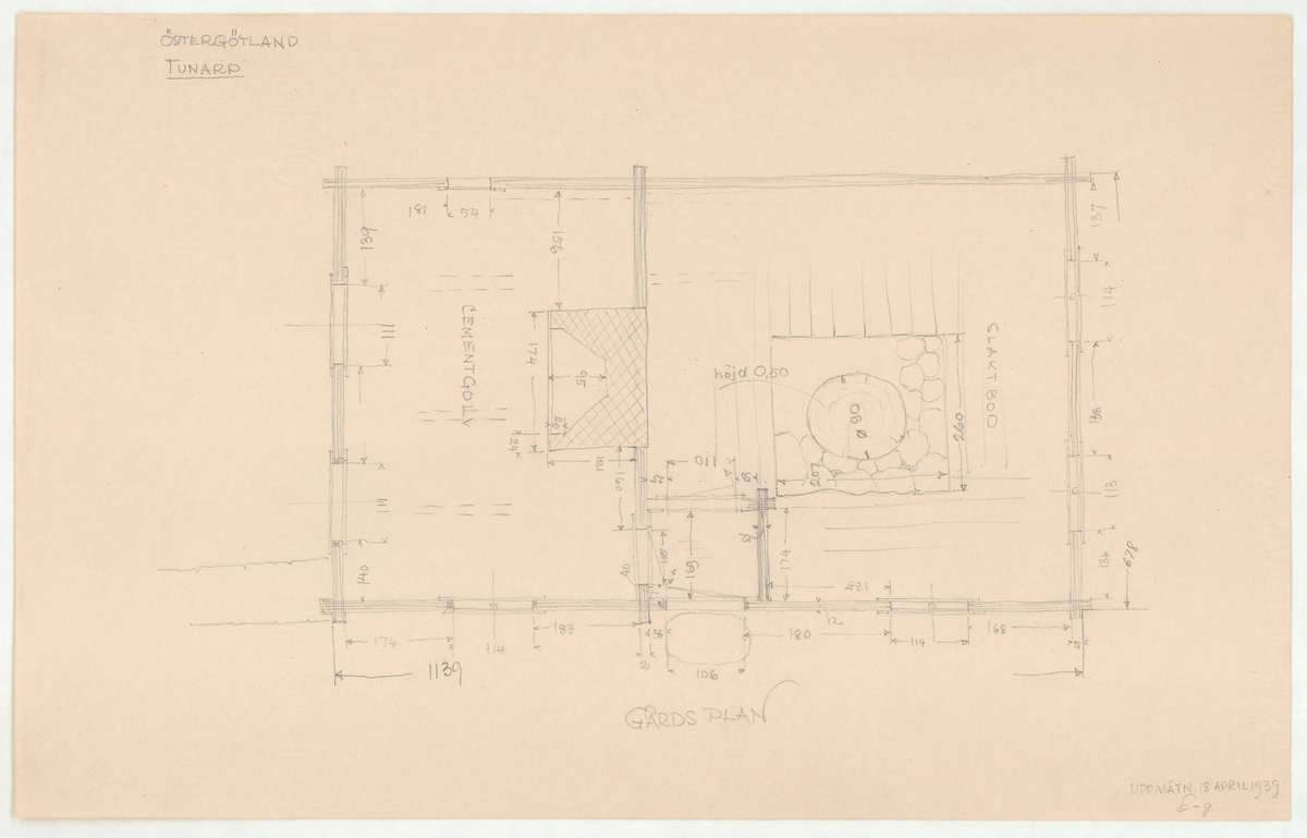 Titel: Skogaholms herrgård. Planritning. GÅRDSPLAN. SLAKTBOD. CEMENTGOLV.