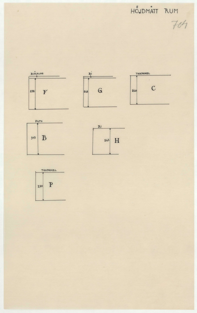 Titel: Skogaholms herrgård. Huvudbyggnaden. Detaljritning. HÖJDMÅTT RUM.