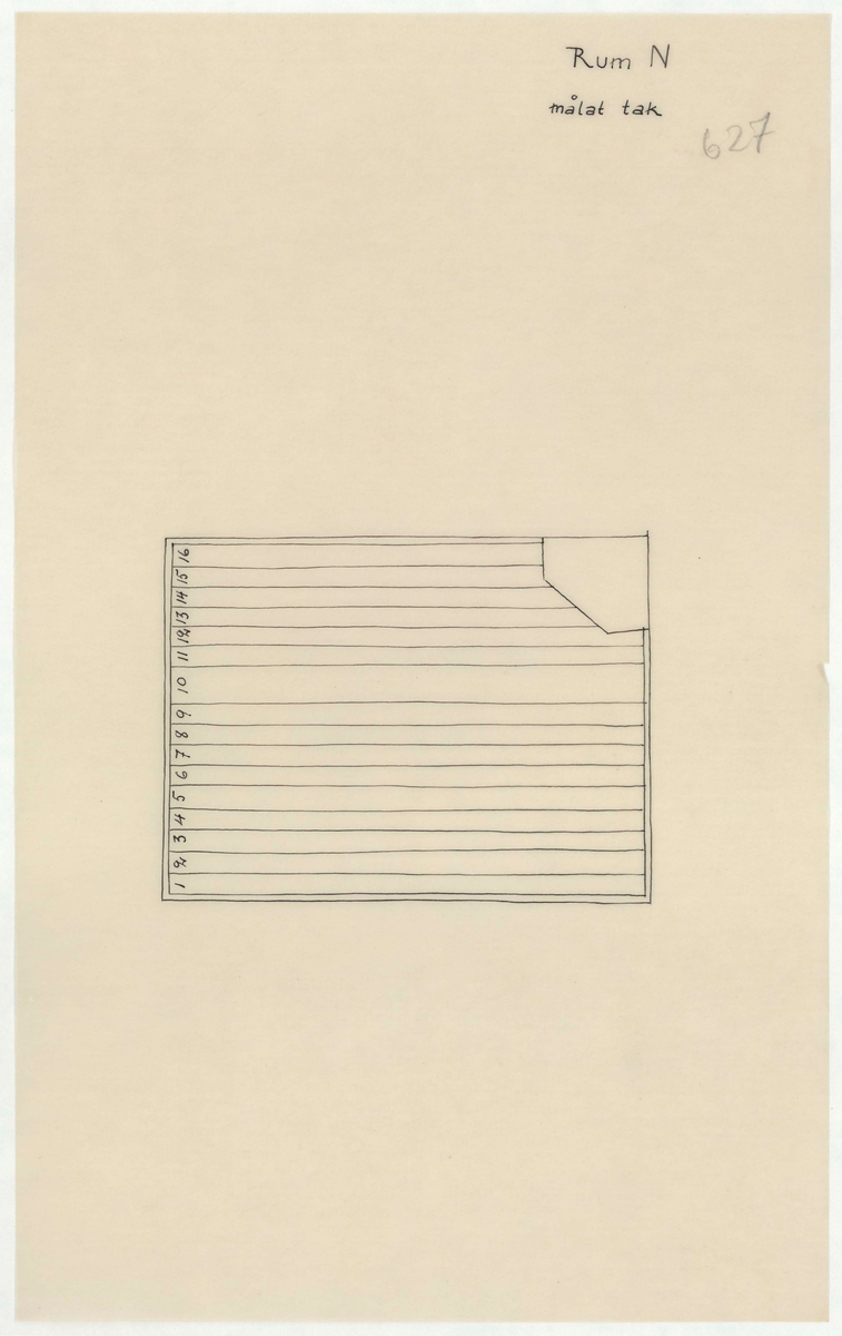 Titel: Skogaholms herrgård. Huvudbyggnaden. Detaljritning. RUM N. Målat tak.