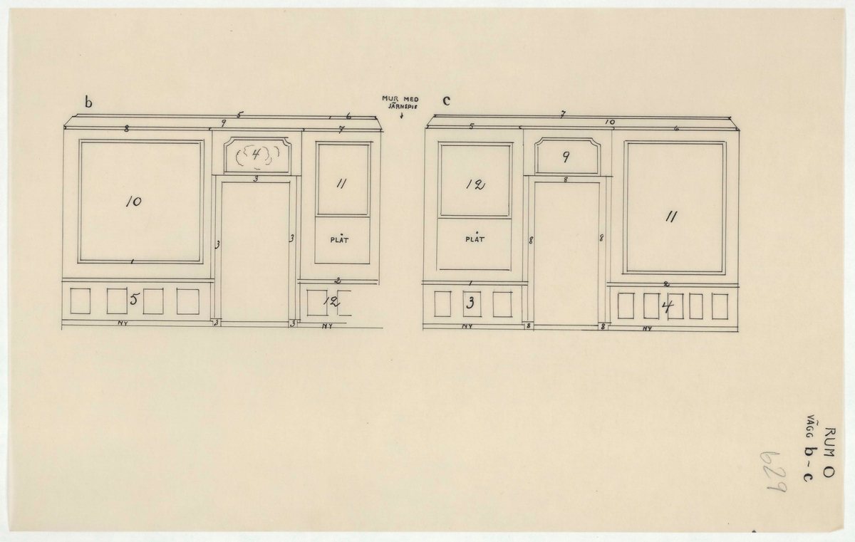 Titel: Skogaholms herrgård. Huvudbyggnaden. Detaljritning. RUM O. VÄGG b-c.