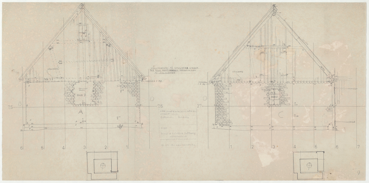 Titel: Skånegården. Stallet. Fasadritning. ÖSTRA LÄNGAN. S-GAVEL.