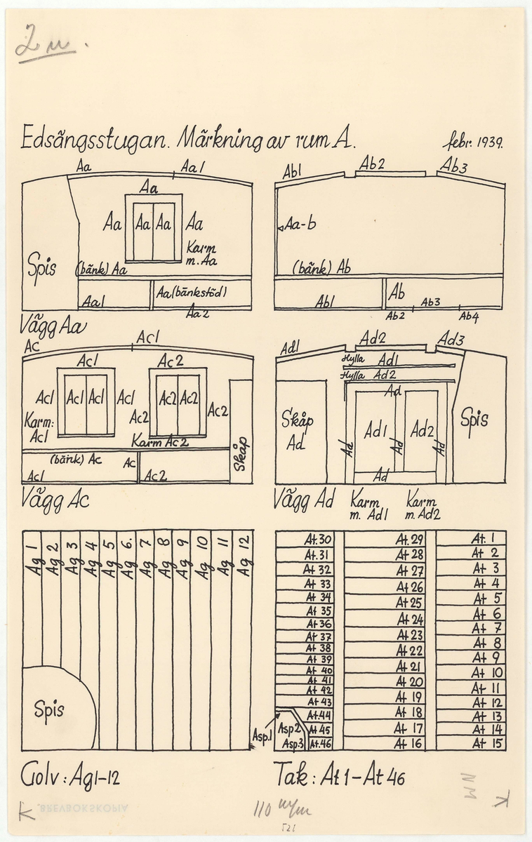 Titel: Delsbogården. Uppmätningsritning. Edsängsstugan. Rum A.
