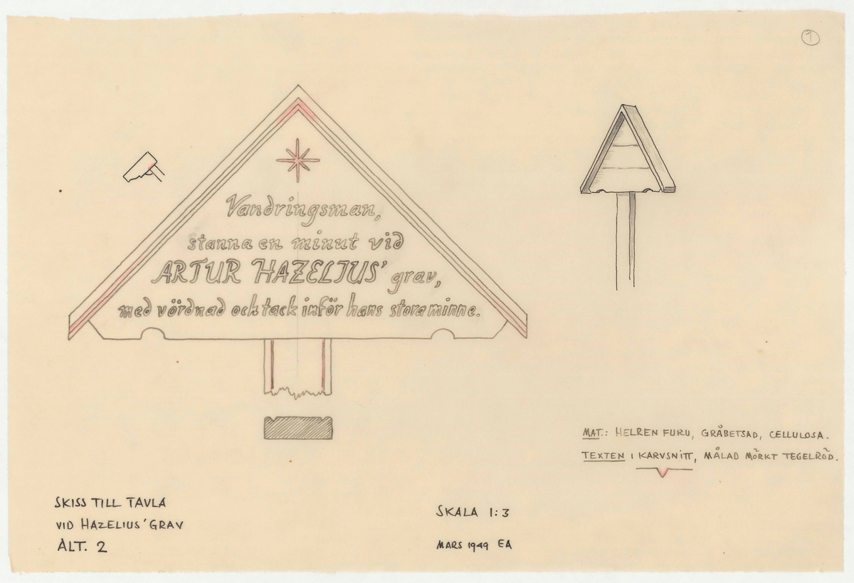 Skiss till tavla vid Hazelius grav, alt. två.