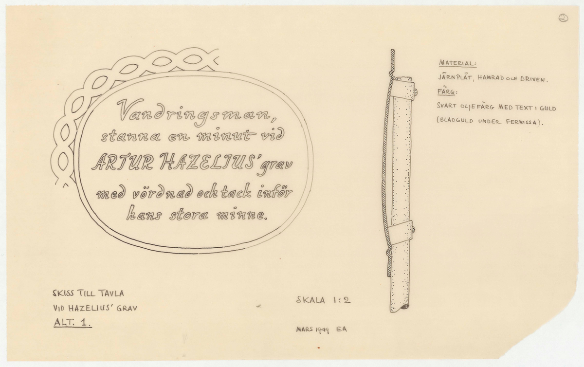 Skiss till tavla vid Hazelius grav, alt. ett.