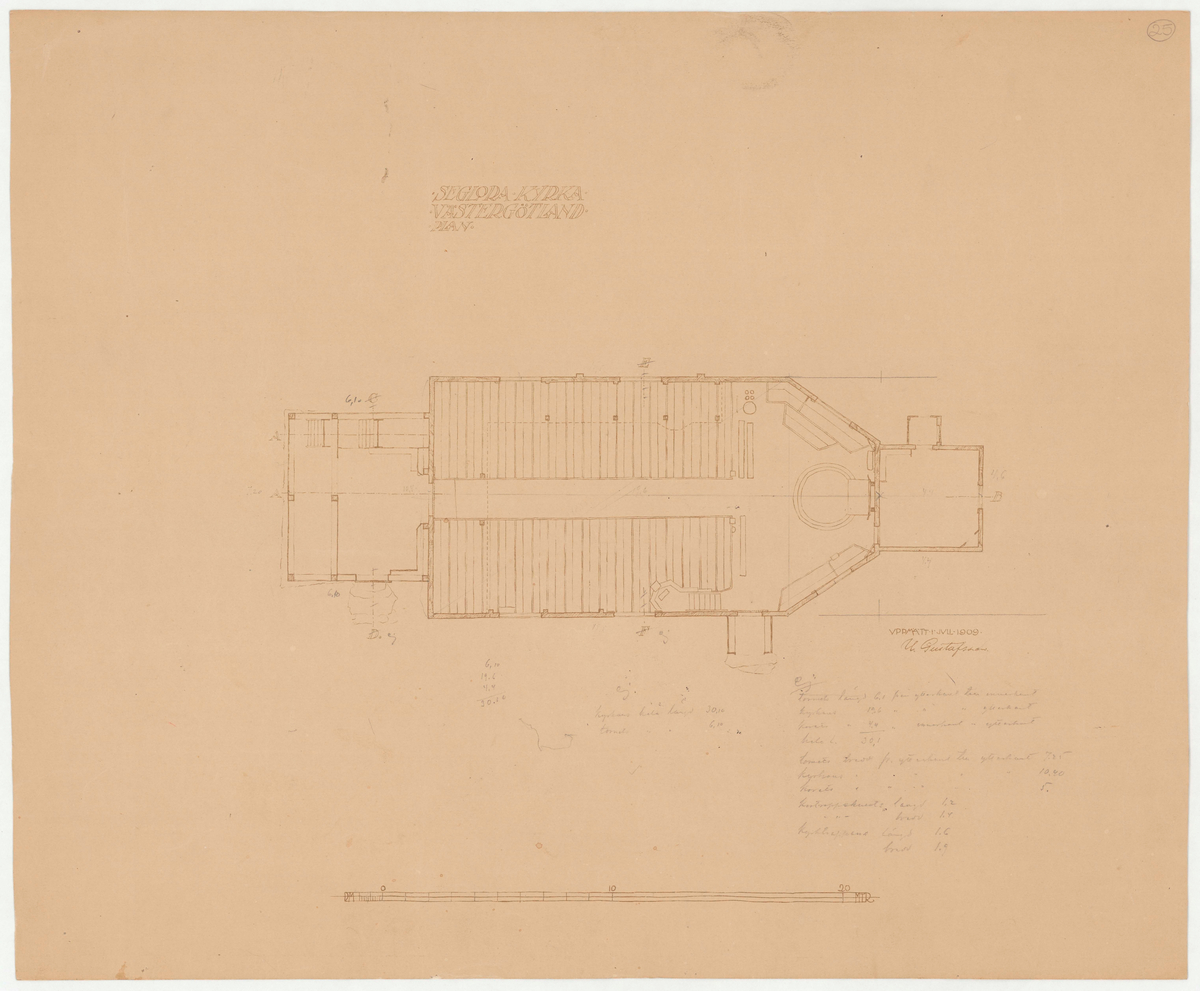 Titel: Seglora kyrka. Ursprungsplatsen i Västergötland. Planritning.