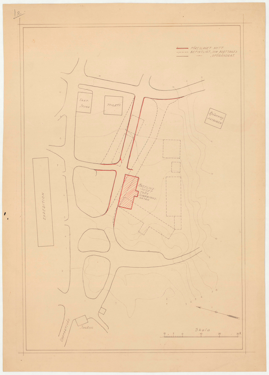Titel: Hazeliushuset. Situationsritning Placering på Skansen.