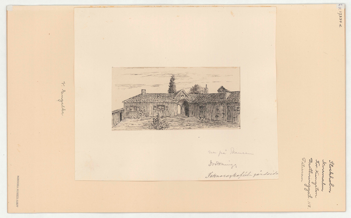 Titel: Apoteket/Petissan. Tuschteckning. Petissans gård.