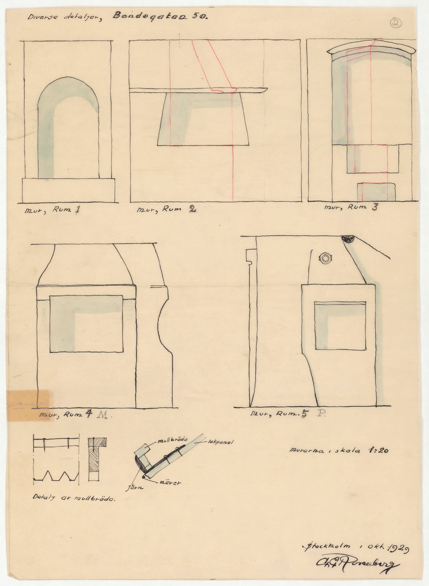 Titel: Kryddkramhandlarens hus. Profilritning. Spismurar rum 1-5.