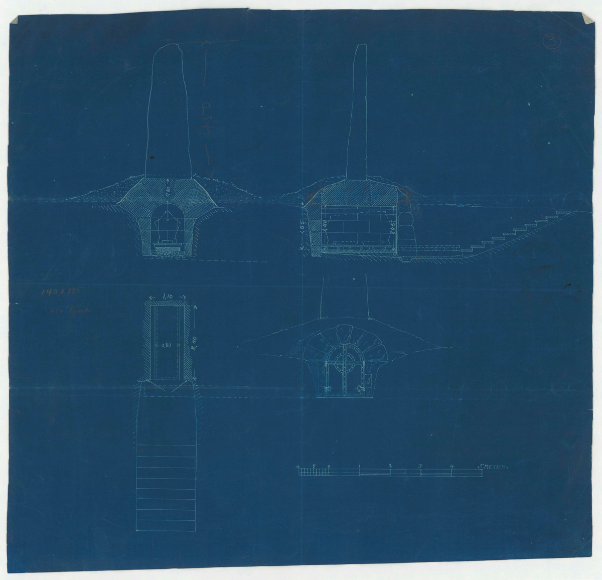 Titel: Hazelius grav. Profilritning. Blåkopia.