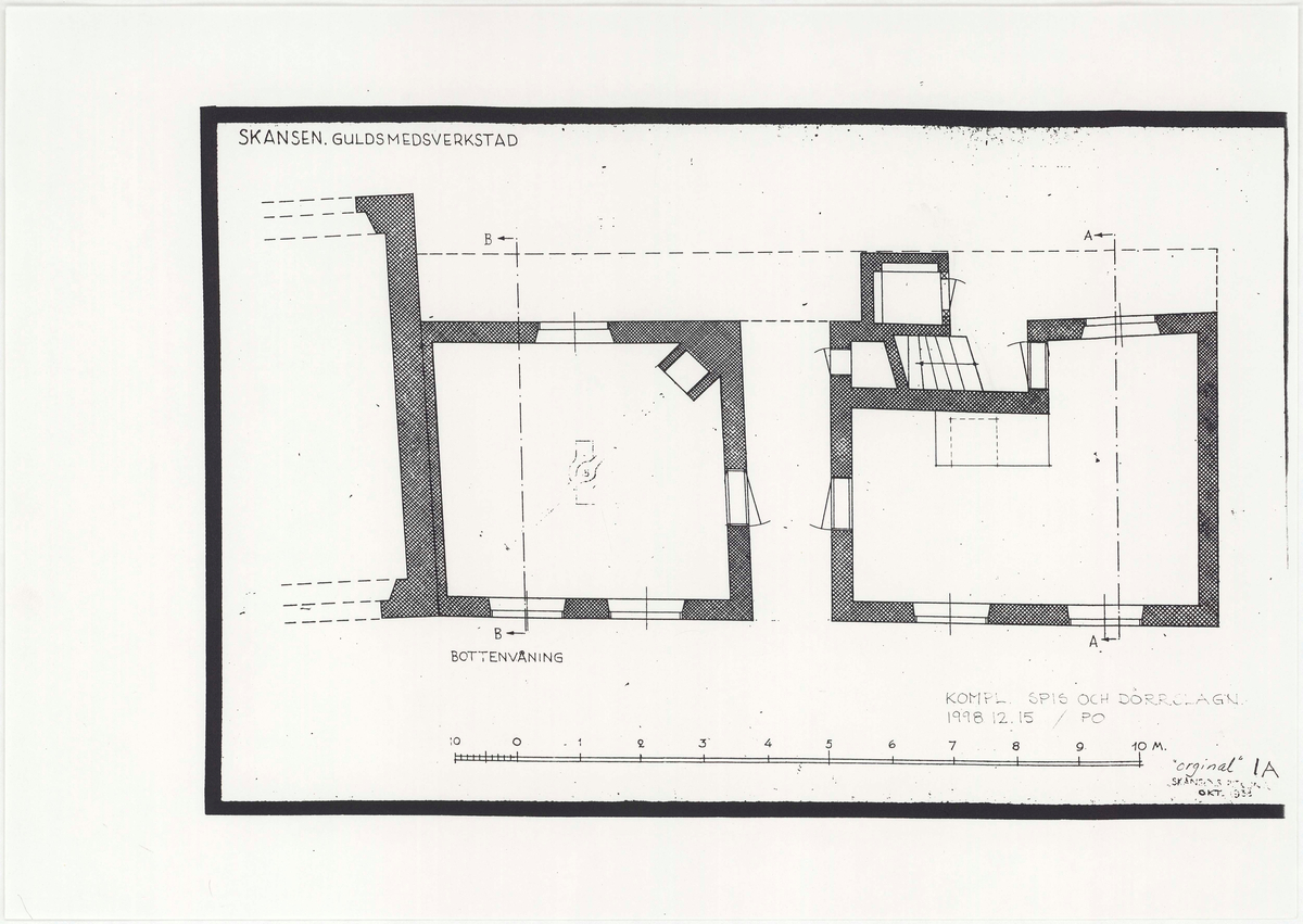 Titel: Guldsmedshuset. Planritning. Guldsmedsverkstaden. Bottenvåningen.