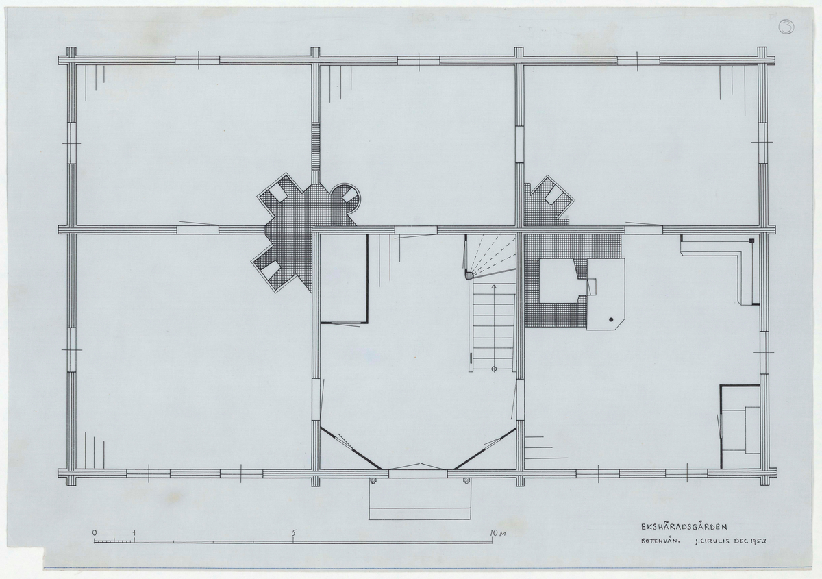 Titel: Ekshäradsgården. Planritning. Bottenvåningen.