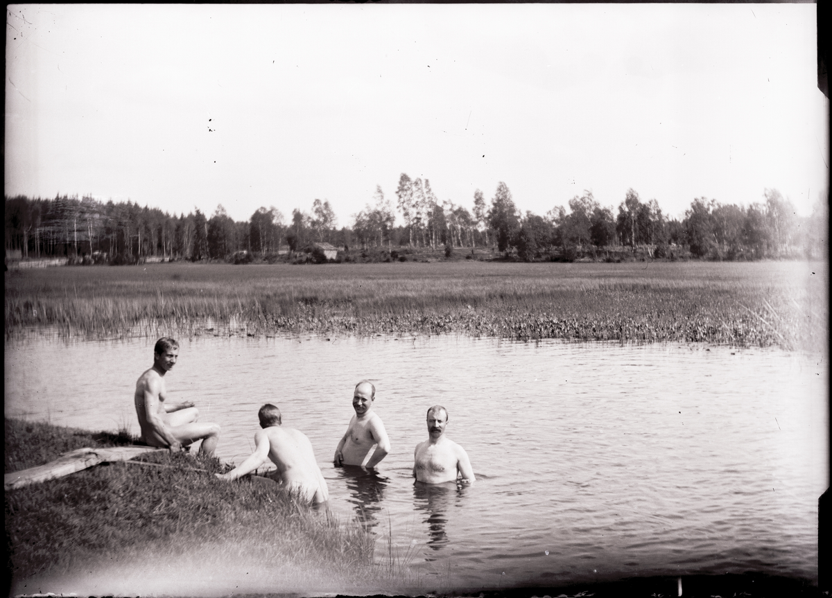 Badbild från Hölja. Oskar Benjaminsson, okänd, Axel och Fridolf Benjaminsson.