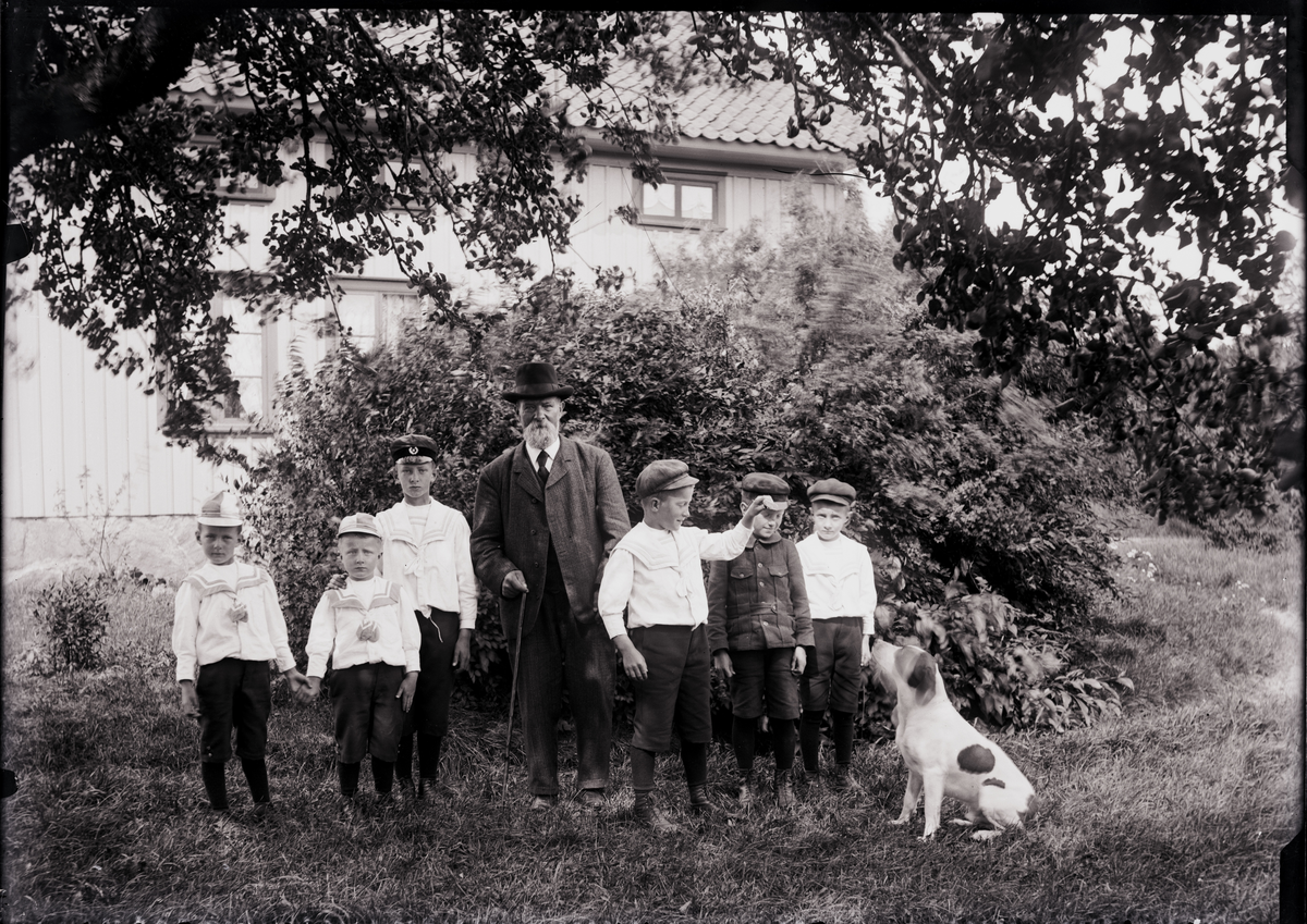 Nårunga, Benjamin Andersson med barnbarn bakom huset vid Greva