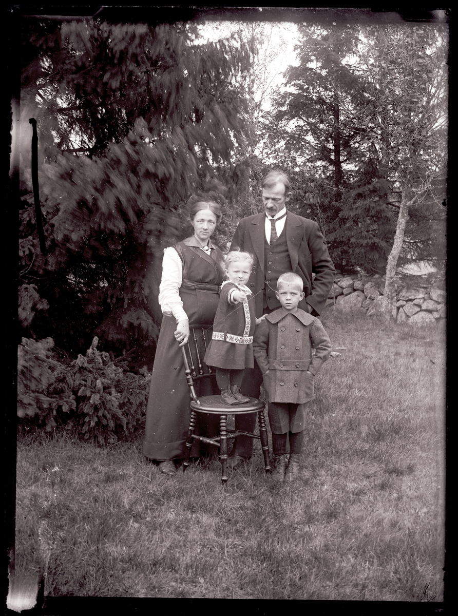 Nårunga. Hanna, Sten, Gottfrid och Ebbe Benjaminsson. Hanna väntar Thor