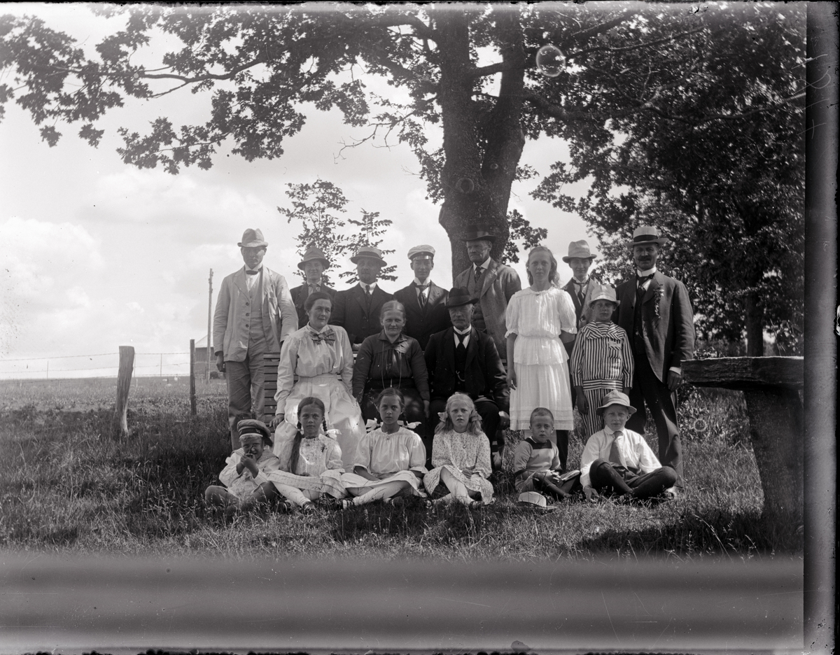 Nårunga. Einar Benjaminsson fjärde från vänster övre raden. Rudolf och Fridolf Benjaminsson längst ut tlll höger övre raden. Åke Benjaminsson längst ut till höger mellanraden. Arne Benjaminsson längst ut till höger längst fram.