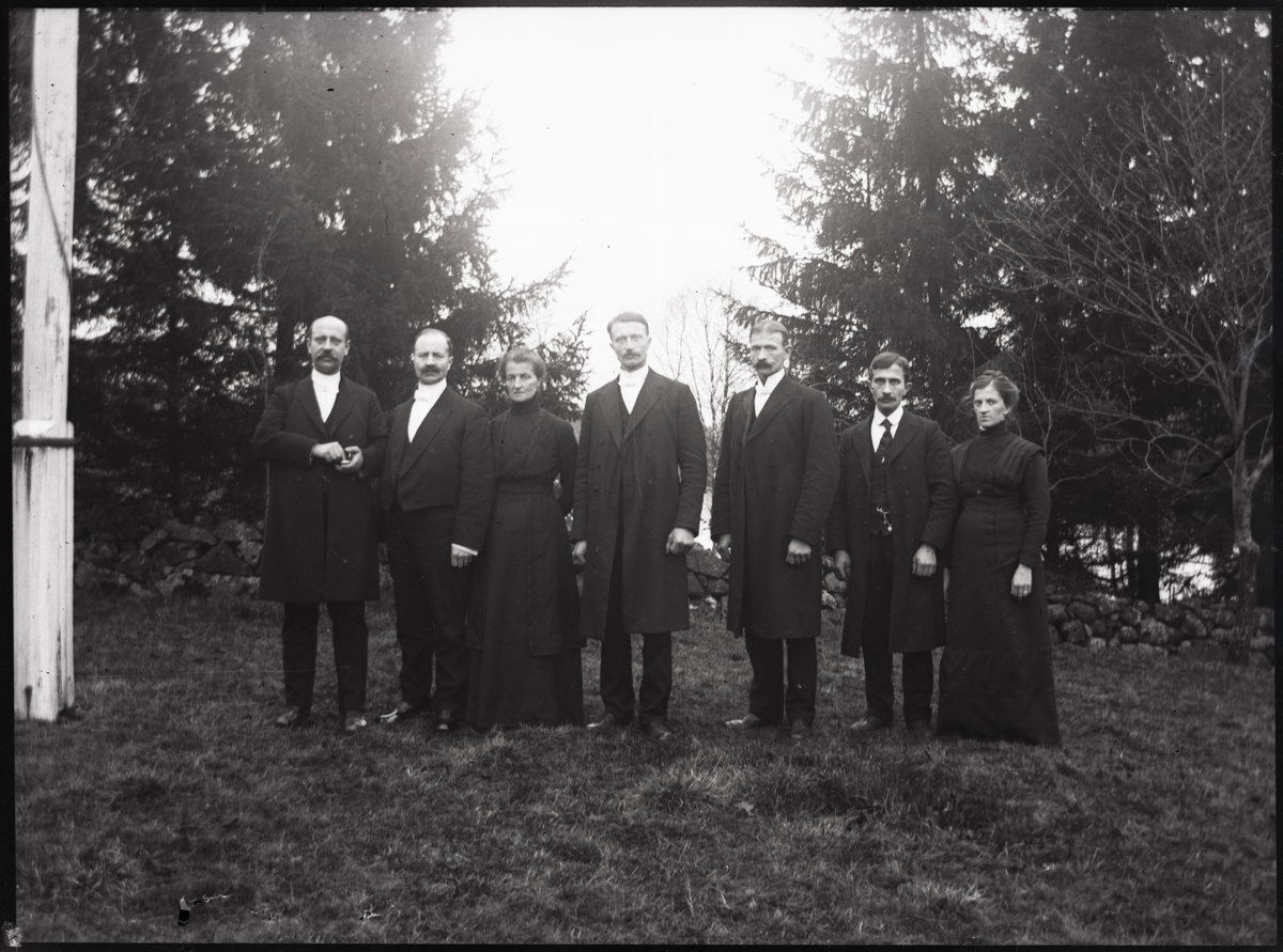 Nårunga. Från vänster: Lotten, Rickard, Gottfrid, Oskar, Betty, Fridolf och Axel Benjaminsson på deras far Benjamin Anderssons begravning