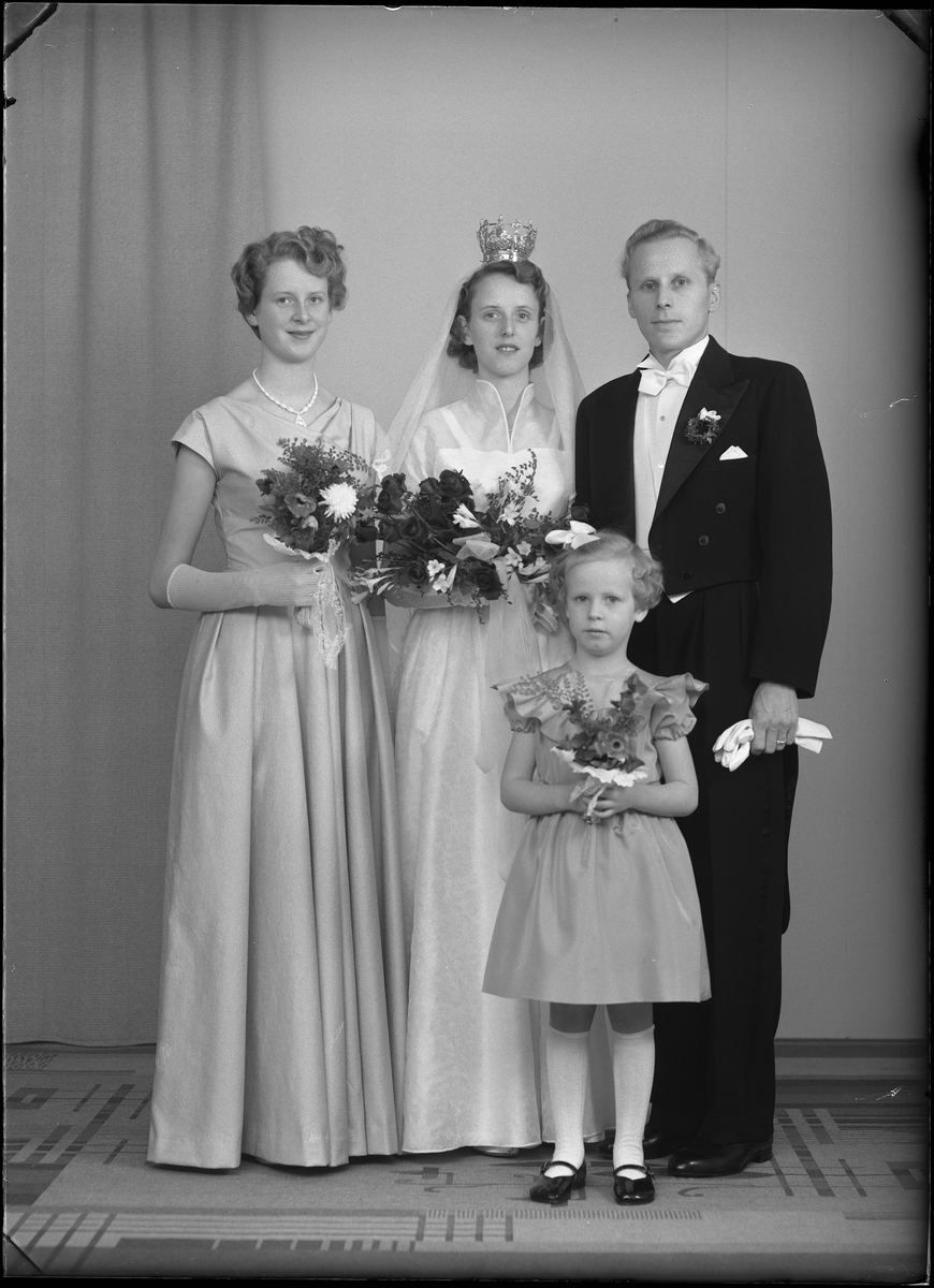 Titel: Grupporträtt, brudpar. Ingenjör Sven Björkstam, Hagavägen 75 III, Solna. Ur Gustaf Åhmans samling.