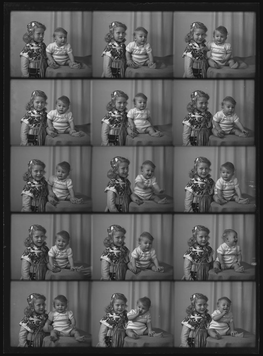 Grupporträtt, två barn. Enar Alnebjär. Fjällsta, Hallstahammar. Ur Gustaf Åhmans samling.