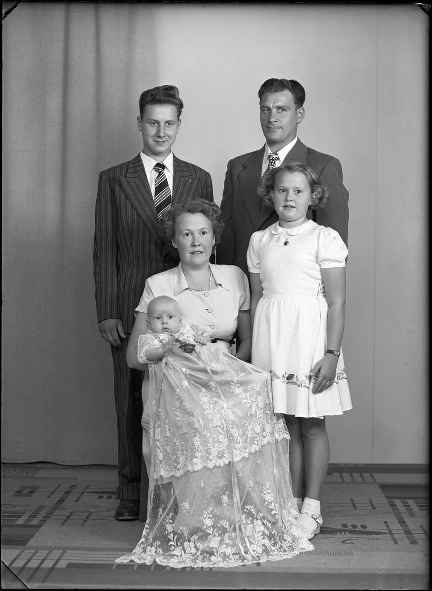 Grupporträtt, fem personer. Sigurd Pettersson, Fjällsta, Hallstahammar.