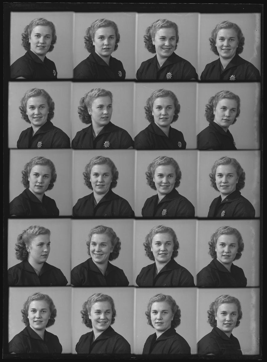 Kvinnoporträtt. Fröken Maj-Britt Pettersson. Västeråsvägen 7, Kolbäck. Ur Gustaf Åhmans samling.