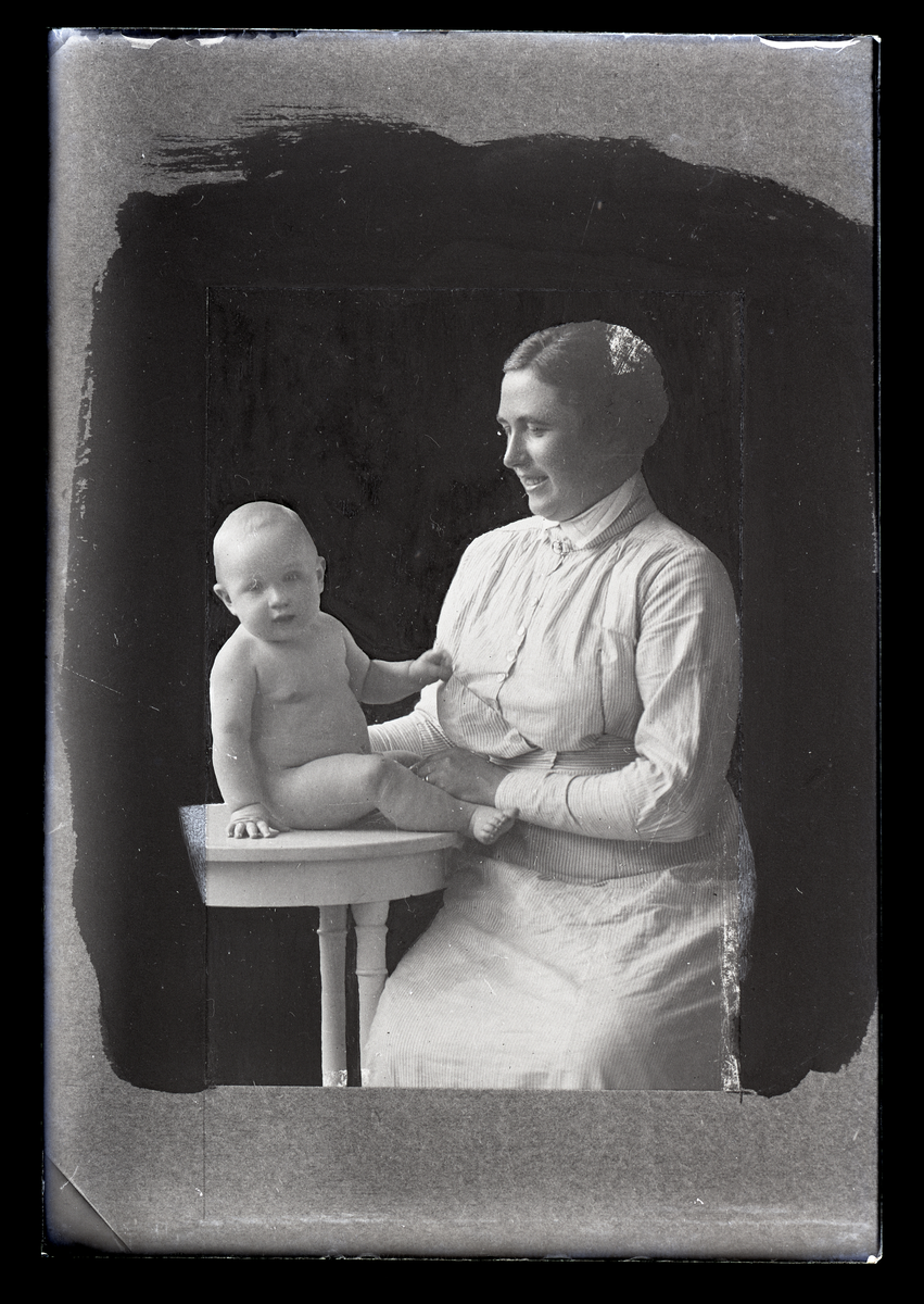 Grupporträtt, kvinna med bebis, Fru Sixten Larsson, Västerbykil.