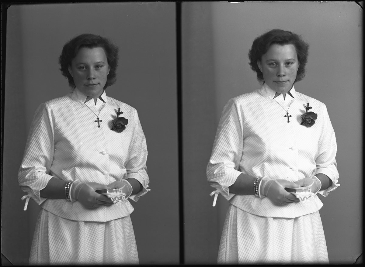 Kvinnoporträtt, konfirmand. Berit Andersson, Hellby, Kolbäck.