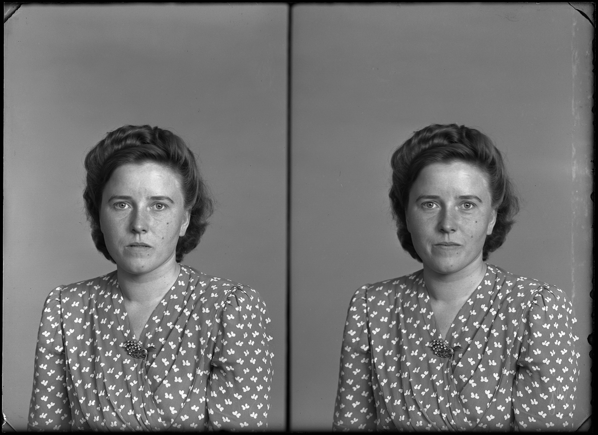 Porträtt, pass. Fru Pettersson, Vänsta.