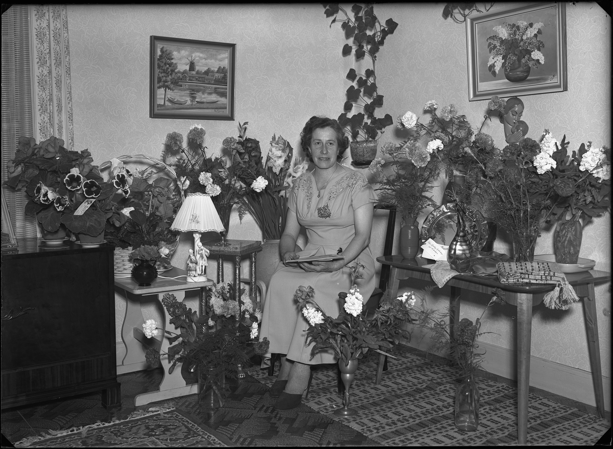 Kvinnoporträtt, 50-års foto. Fru Nanna Johansson, Lyckhem, Box 1021, Hallstahammar.