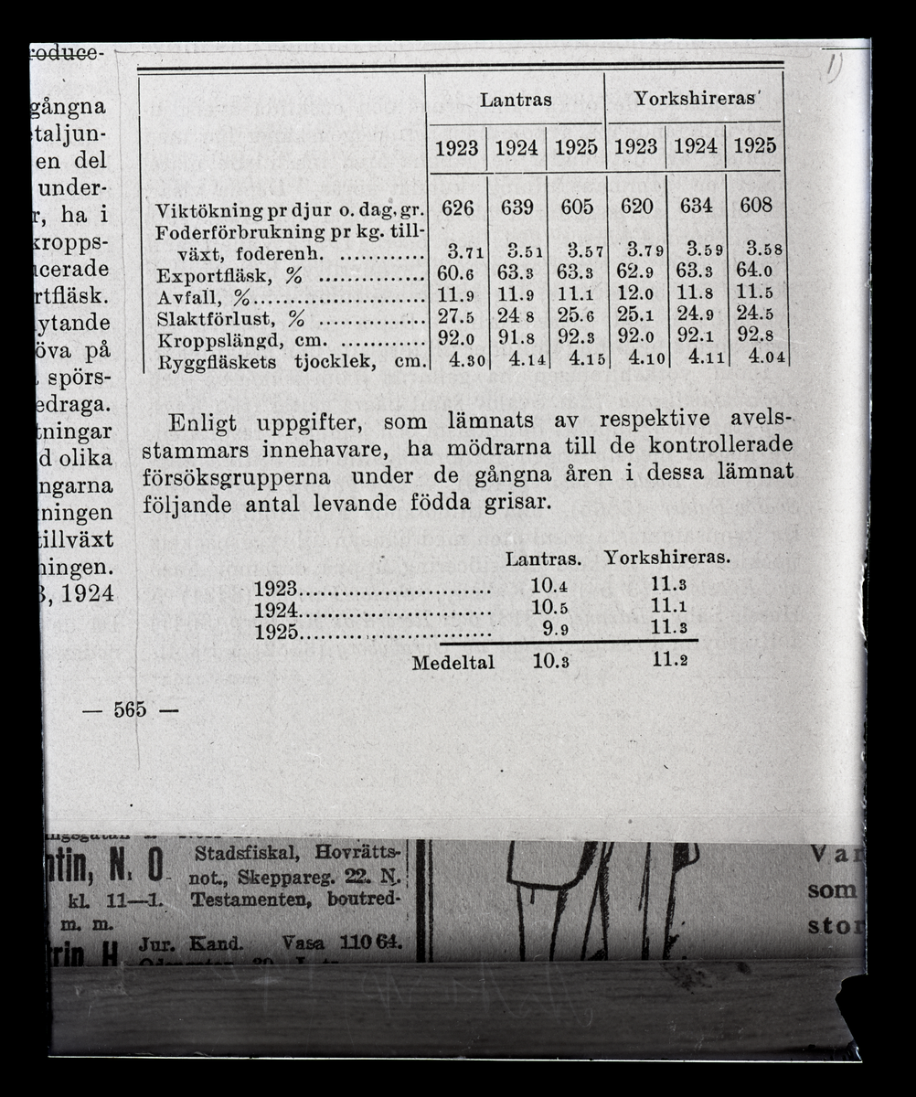 Tabeller över grisproduktion.. Dir. Celsing.