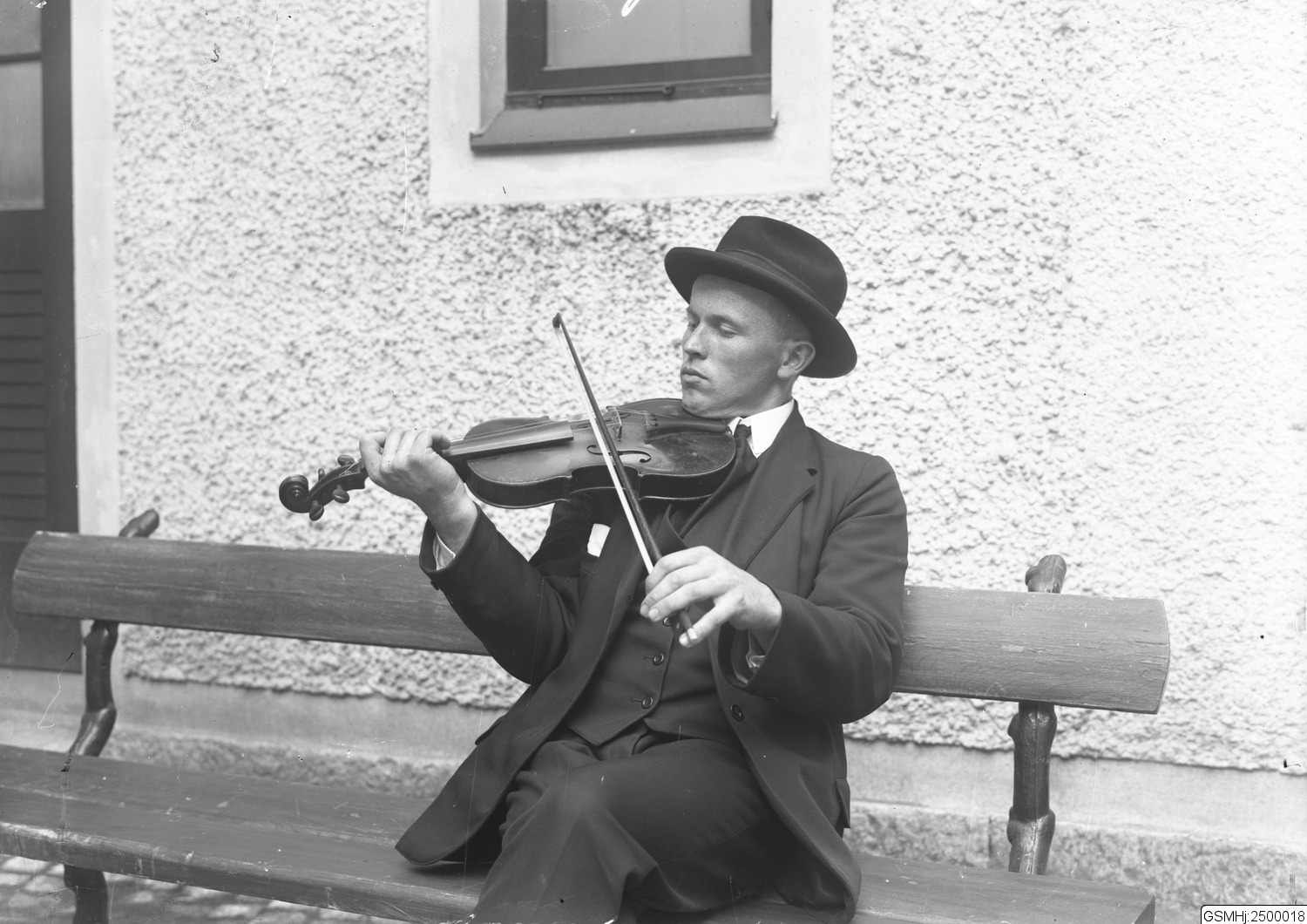 Söndagen den 3 maj 1925 i Göteborgs-Tidningen kunde läsaren ta del av en artikel om den två dagar långa västsvenska spelmansstämman som skulle hållas på Konserthuset. Till stämman hade många spelmän från hela landet anmält sig. Det var både äldre och yngre spelman som tog plats på scen och spelade polskor, brudmarscher, dansmusik och vallåtar. Konserthuset var nästan fullsatt båda dagarna. Här på bilden ser vi en av spelmännen som hette Arvid Johanson från Skaraborgs län.