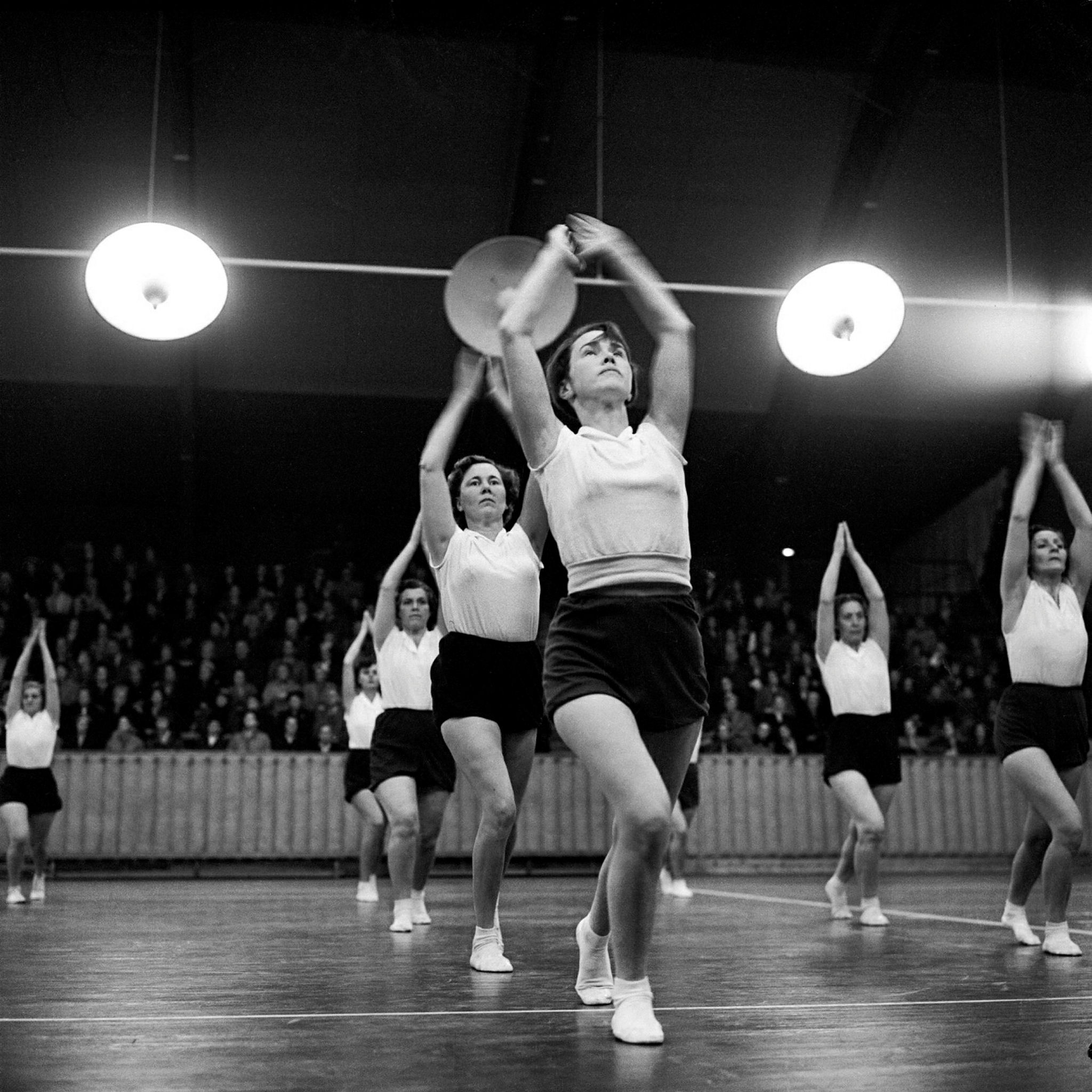 Konsums husmorsgymnastik firar sitt 15-års jubileum med en uppvisning i Eriksdalshallen.