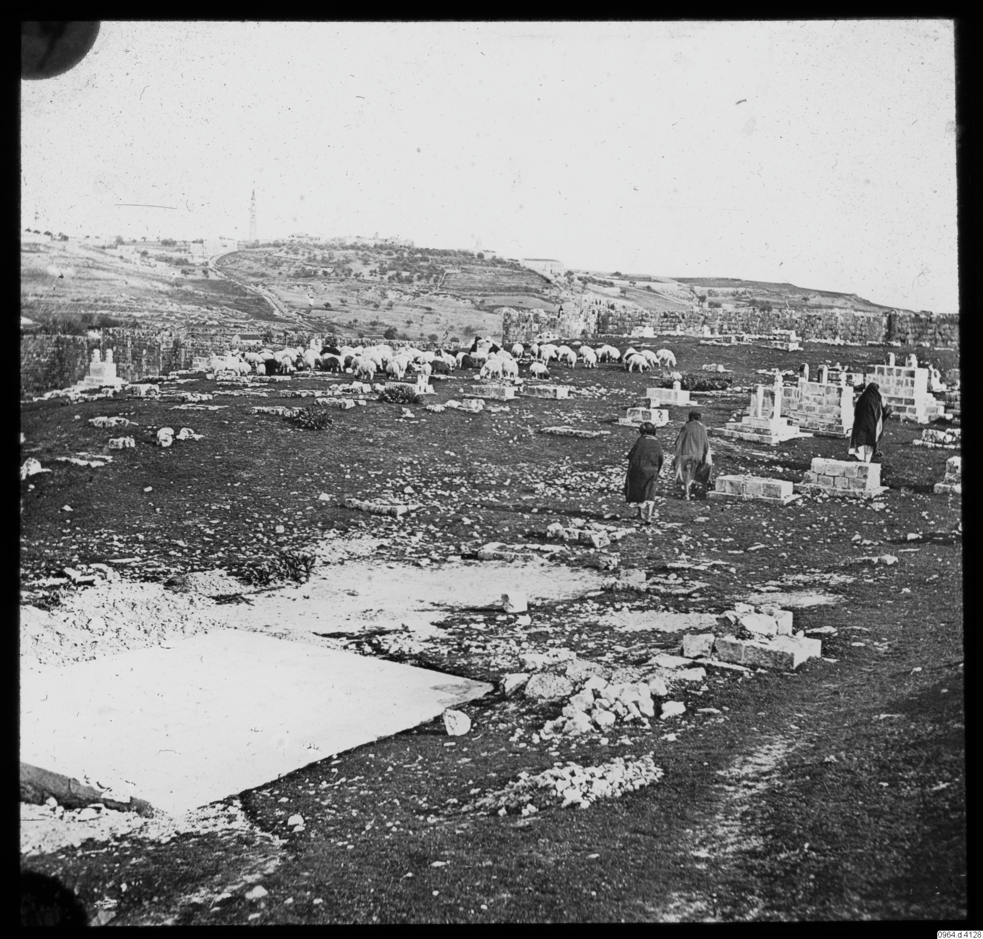 byggnader, människor, kyrkogård, kulle, fårhjord, berg, fotografi, photograph