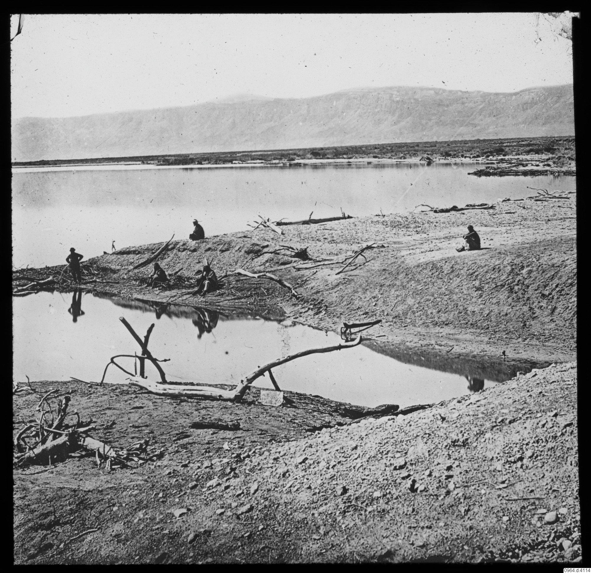Döda havet. Vattnet är för salt för att något skall överleva, en människa flyter på vattnet. Jeriko ligger på slätten en mil från Döda havet. Pilgrimsvandringen till Jerusalem går över bergen. Avståndet är två mil och närmare 1200 meters stigning.