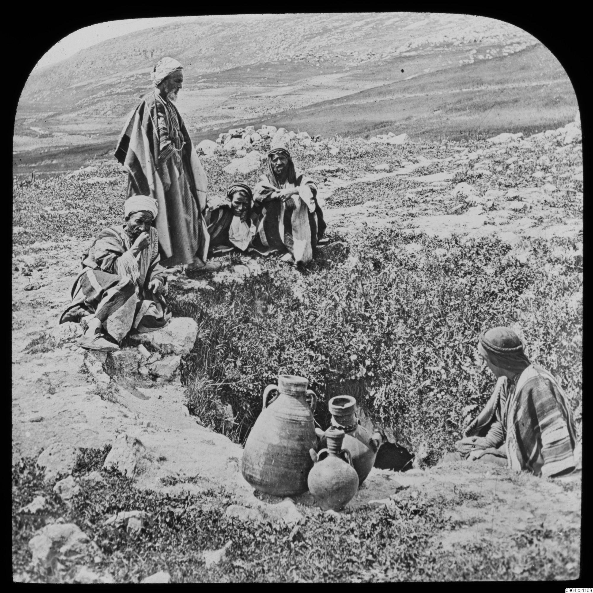 Palestina. Sykar. Jakobs brunn. (Joh. 4:5-6). Härifrån går två vägar mot Jerusalem; en genom Samarien och en följer Jordanfloden till Jeriko.