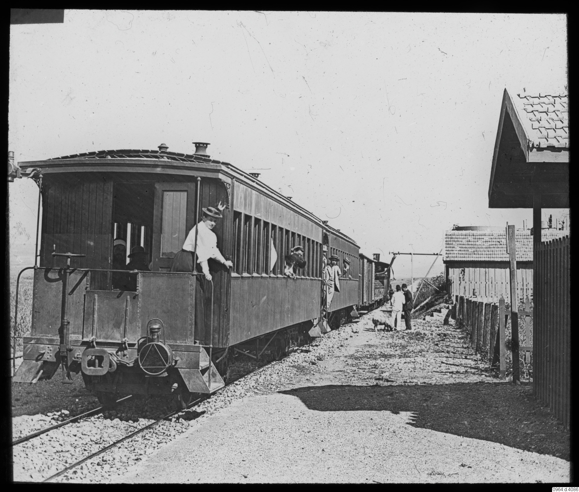 byggnader, järnvägsvagn, passagerare, kvinna, järnväg, fotografi, photograph