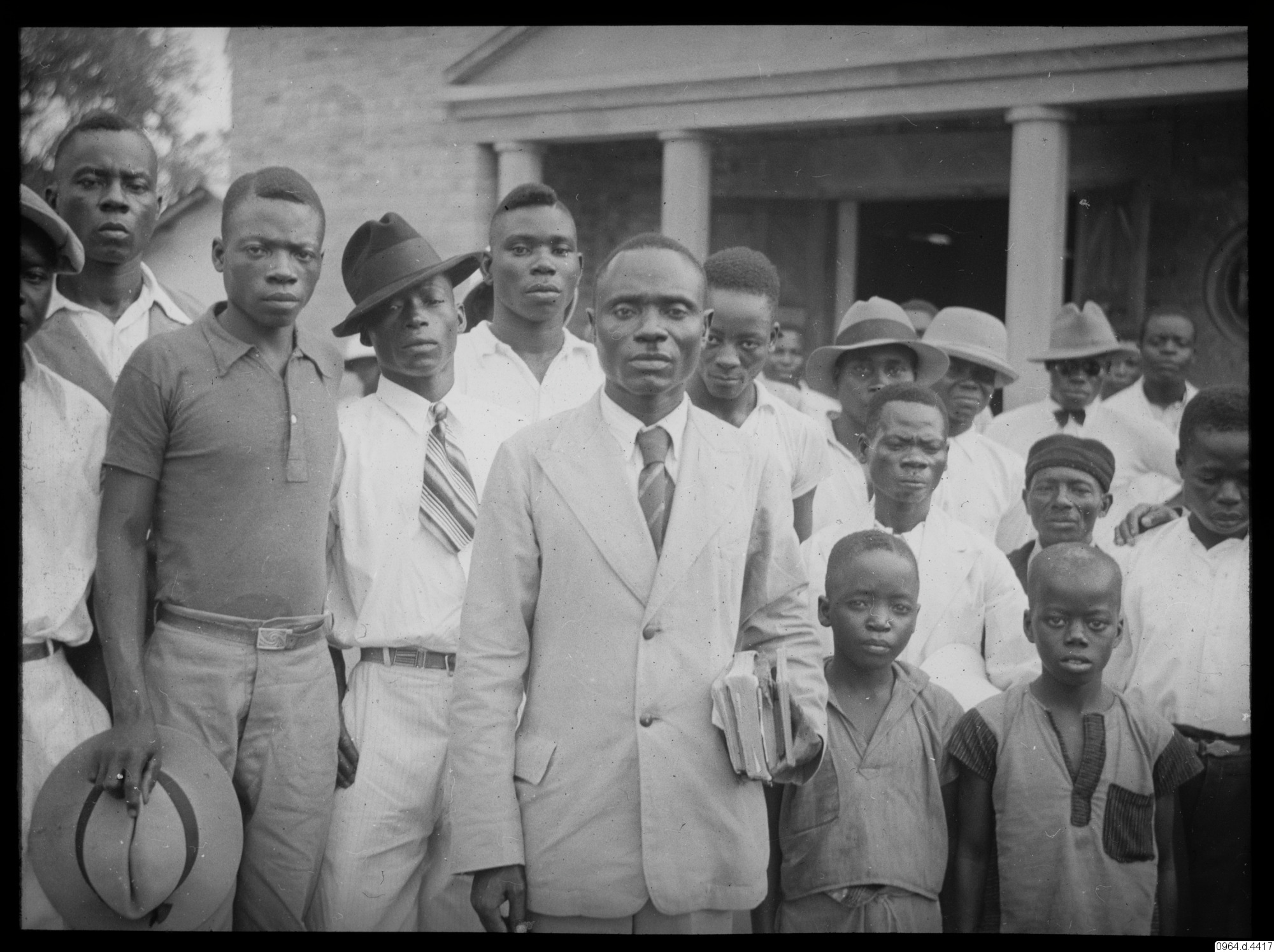 böcker, gruppbild, män, barn, byggnad, hattar, fotografi, photograph