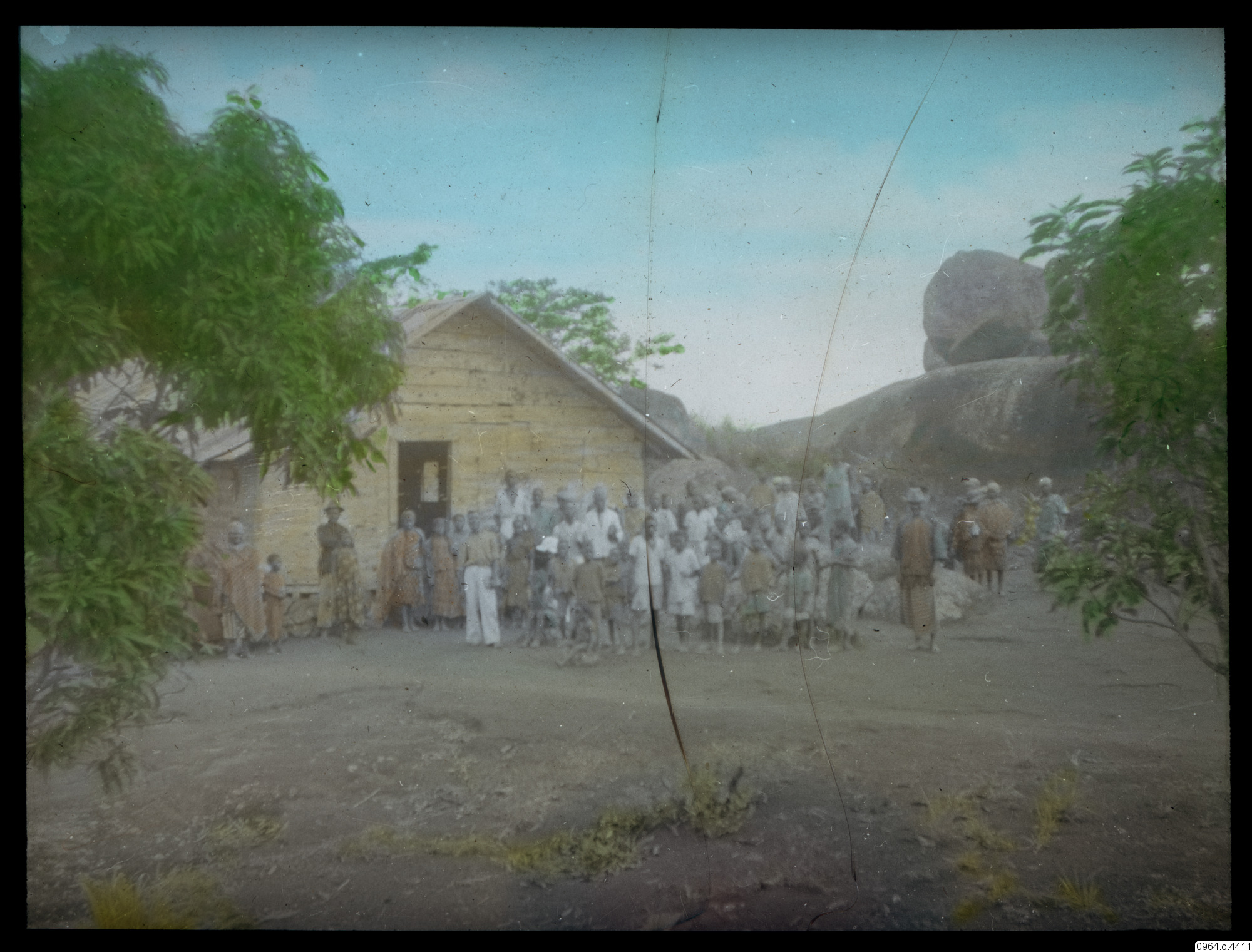 hydda, byggnad, gruppbild, barn, stenblock, klippa, fotografi, photograph