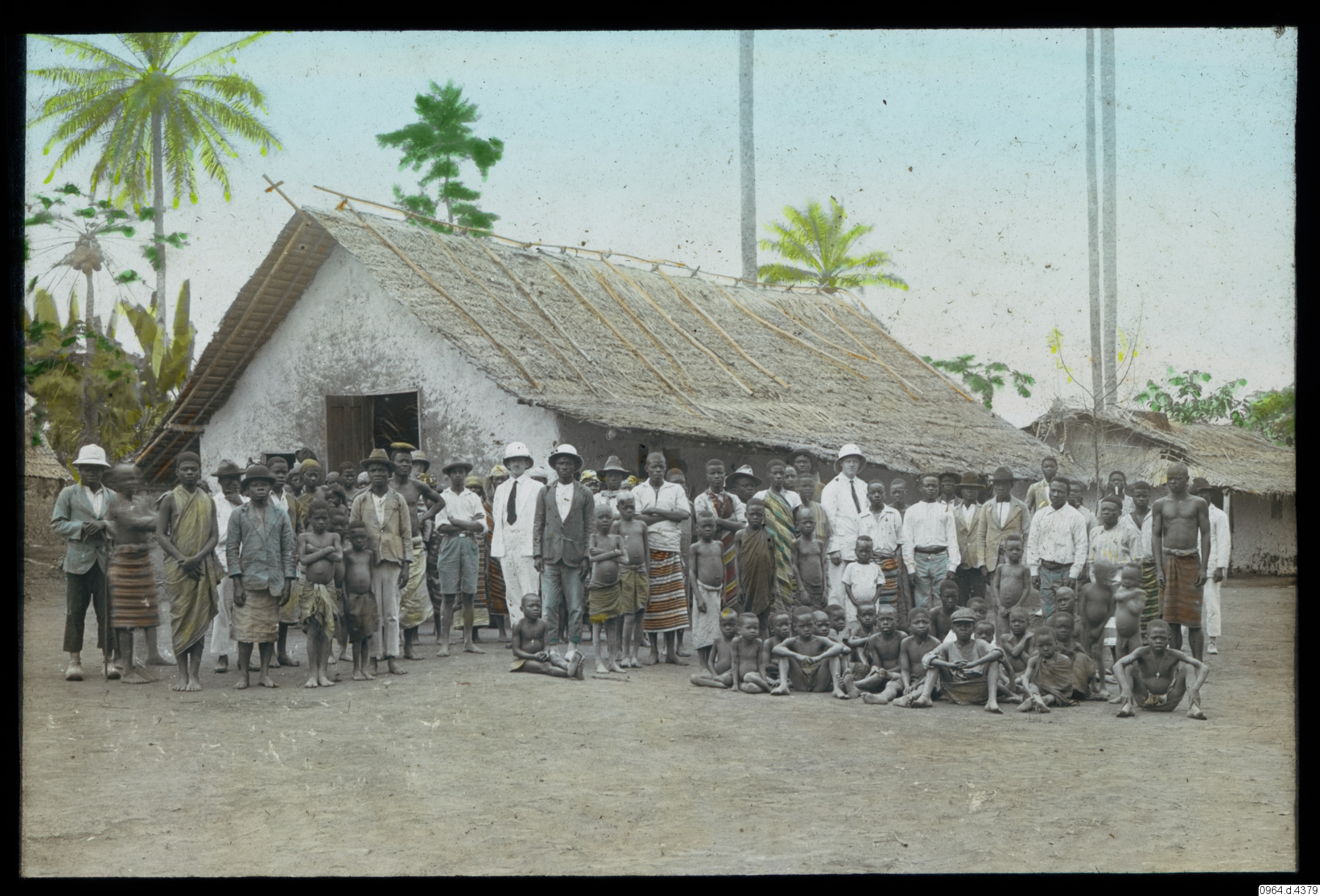 missionsstation, folksamling, missionärer, byggnad, gruppbild, fotografi, photograph